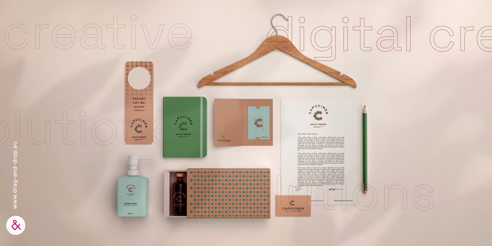 Chez Drag and drop, on a eu le plaisir de repenser entièrement l’identité de l'Hôtel les Capucines. L’idée, c’était de sortir du branding classique pour offrir à l’hôtel un univers qui lui ressemble vraiment.